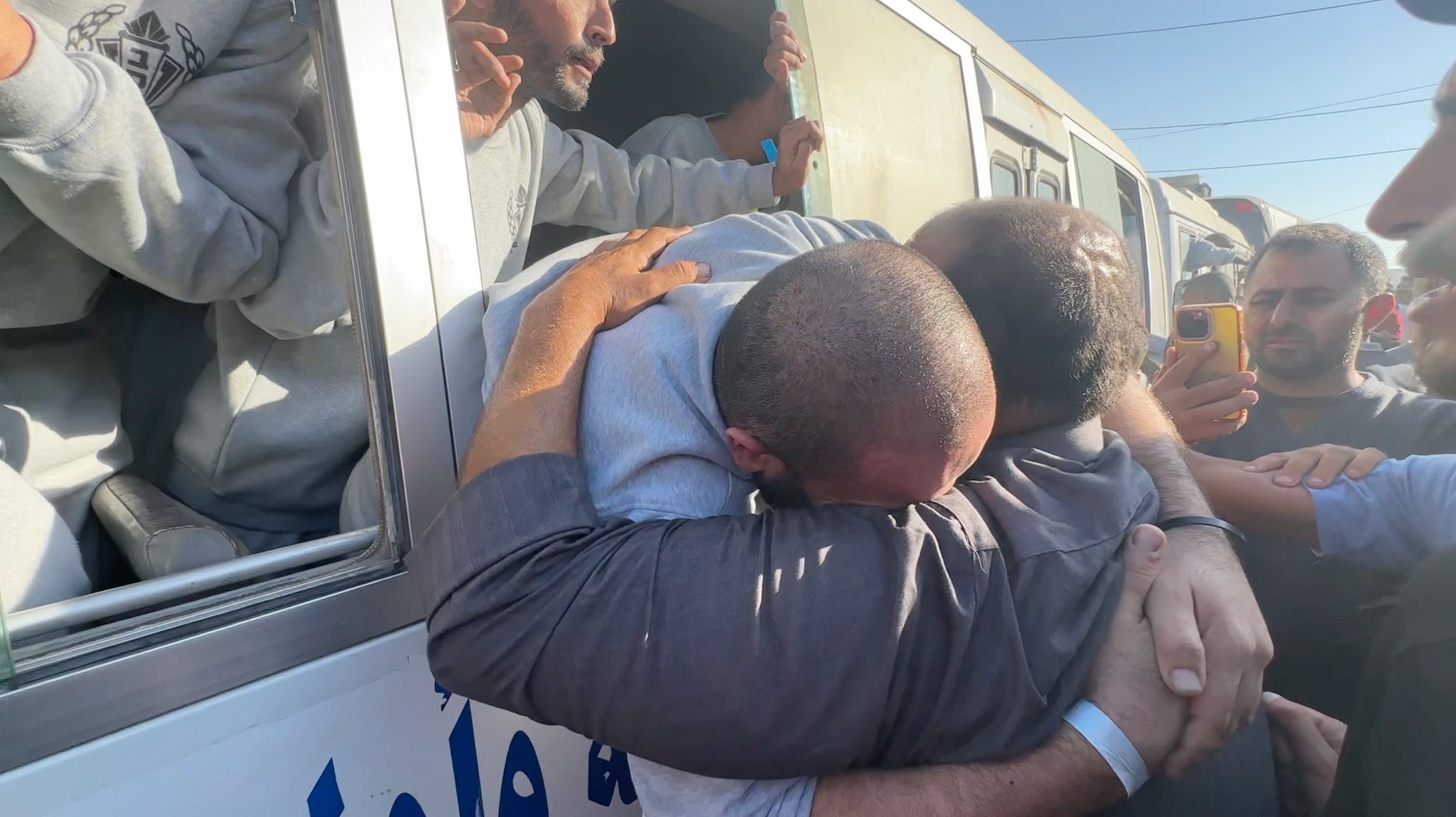 “Praise be to God, who honored us with reaching Gaza, so we can breathe its pure soil, soaked with the blood of the martyrs, the brave wounded, and its patient and steadfast people,” Mahmoud Fayez Abu Al-Kas, a freed Palestinian captive told Drop Site through a bus window. “My message to the people of Gaza: Do not lose hope, do not despair of God’s mercy, and God willing, He will reward us with something better and honor us.”
