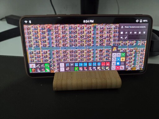 The minimum system requirements for Factorio are enough to make this a challenge, especially compared to vintage title like DOOM. For Linux systems a dual-core processor and 8 GB of memory are needed, as well as something with at least 1 GB of VRAM. [Point_Substantial]’s Xiaomi Mi 9T almost meets these official minimum requirements, with the notable exception of RAM. This problem was solved by adding 6 GB of swap space to make up for the difference.