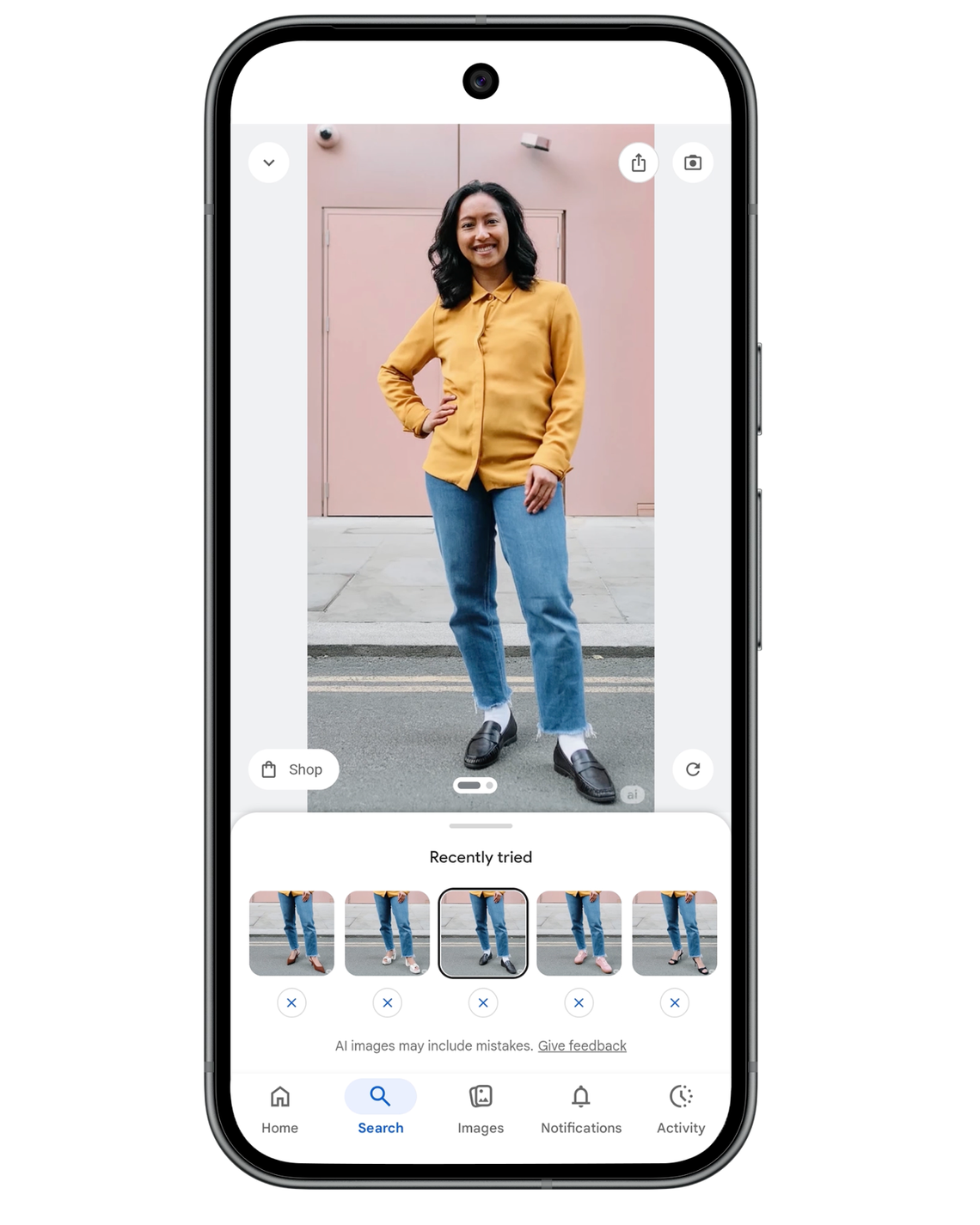 Virtual try-ons are actually showing up all over the place in retail — you’ll find them on both luxury-brand apps and Shein — and they tend to suffer from the same issues, given that they’re essentially mashing images together: The clothes don’t fit quite right; the lighting is always strange; generations can take a little while; body types are approximated but rarely nailed. But they might be good enough to help rule something out or consider something new, and they’re certainly good enough to be compelling and occasionally fun to use. The temptation to merge virtual try-ons with ads — to follow users around the internet not just with evidence that you know a lot about them but with actual photos of themselves using new products — is surely massive but is currently constrained by two things. First, generating such images or videos is computationally and literally expensive. And second, putting users’ faces in, say, a branded Instagram Reel would probably feel to many like a violation. (For now, Google’s explainer about its virtual try-on feature marks a boundary far more conservative than that, emphasizing that the feature won’t currently show up on sponsored products.)