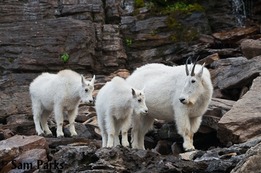 Mountain goat nanny and kids. Glacier National Park, Montana.