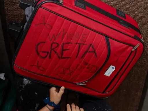 Israeli guards stripped humanitarian activist Greta Thunberg naked and wrote ‘whore Greta’ on her luggage after abducting her, and around four hundred other volunteer crew members, in a criminal attack in international waters on the Global Sumud Flotilla carrying baby food and other vital items to Gaza: