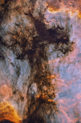 Jeffrey Horne/Drew Evans The Cygnus Rift is a dark, broad lane of dust often captured in images of the North America Nebula (NGC 7000) and the Pelican Nebula (IC 5070), occupying the gulf between the two and forming their outlines. But this inky, swirling complex takes center stage in this image comprising nearly 365 hoursContinue reading "Negative space"