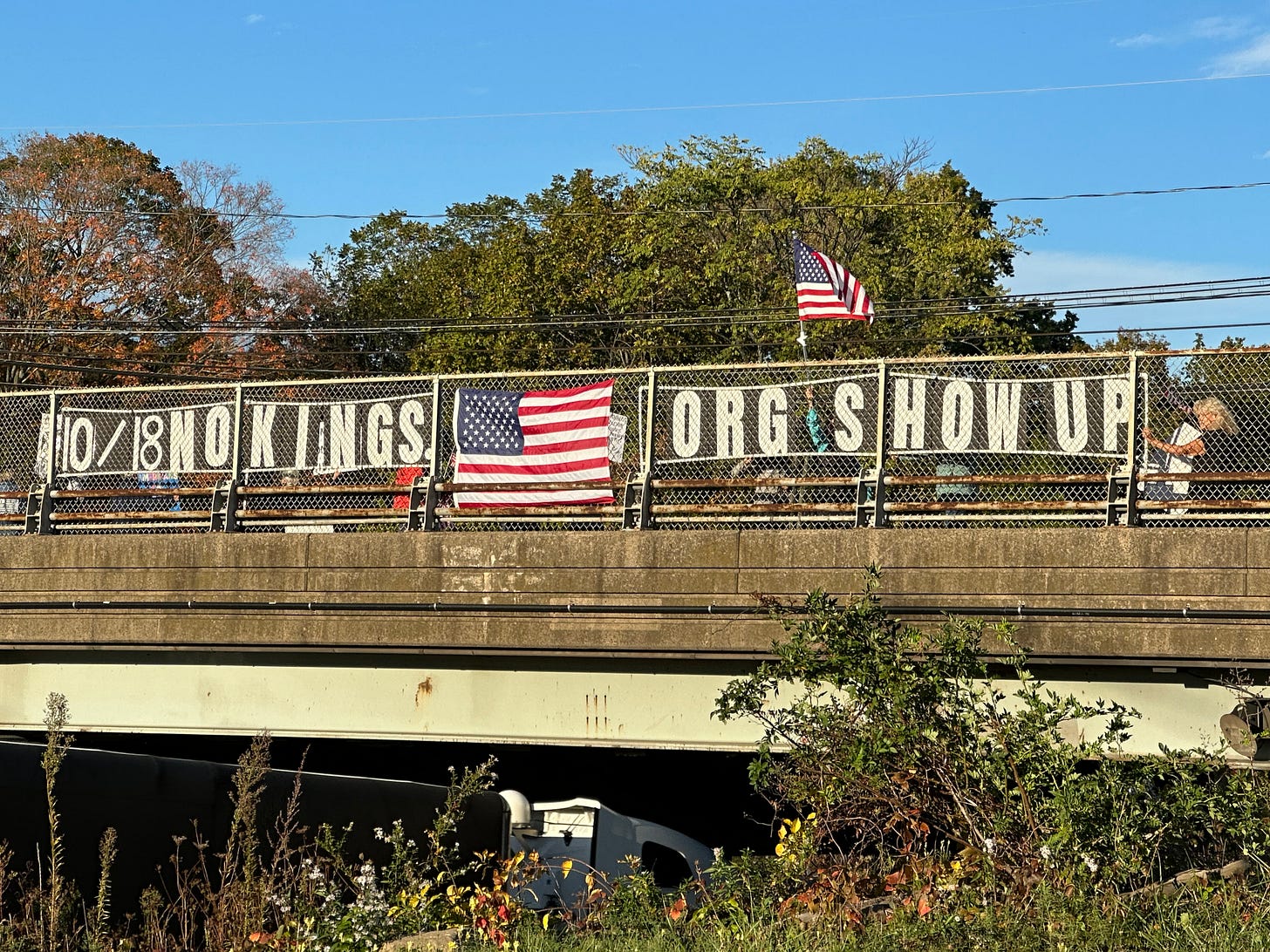 Below, ReSisters Visibility Brigade, yesterday over I-95 in Norwalk, Connecticut: