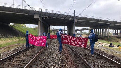 Geef Tegengas emphasized the action targeted the sector’s deep complicity in Israel’s genocide and other human rights abuses. “We demand that the port of Rotterdam immediately implement a complete arms and trade embargo on Israel, stop importing products and raw materials from areas where human rights are violated, and make a plan to phase out all polluting waste as quickly as possible,” they said.