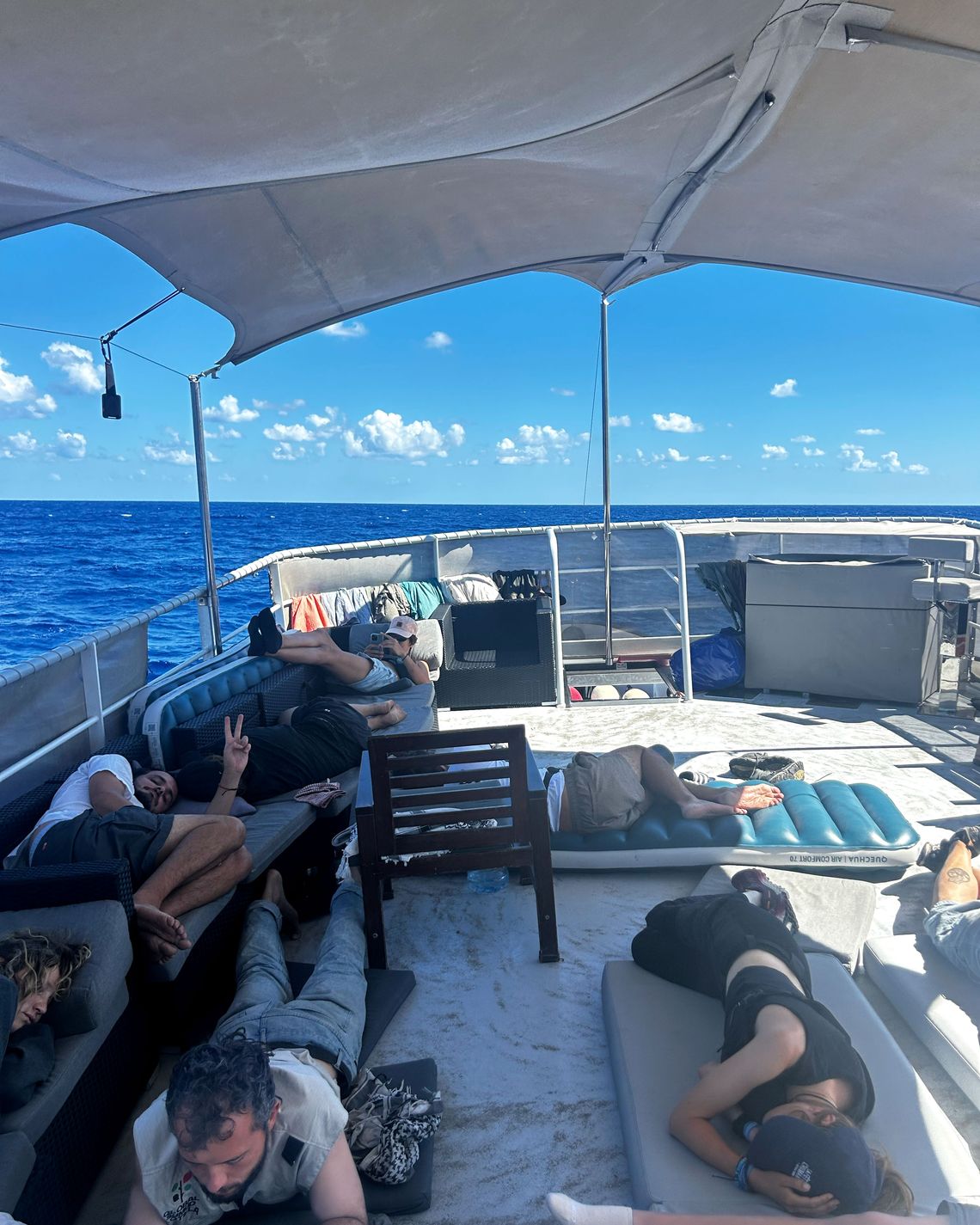 The risk is higher for all Palestinians on these missions. “I’m pretty sure my name is somewhere within the realms of the Secret Service,” says Mobarak, who is Palestinian American and has relatives and a home in the West Bank. She has participated in many pro-Palestine protests in the U.S., including a monthslong encampment in front of Antony Blinken’s house. She opted to join the land crew instead, doing press, managing social accounts, and monitoring the boats’ feeds.