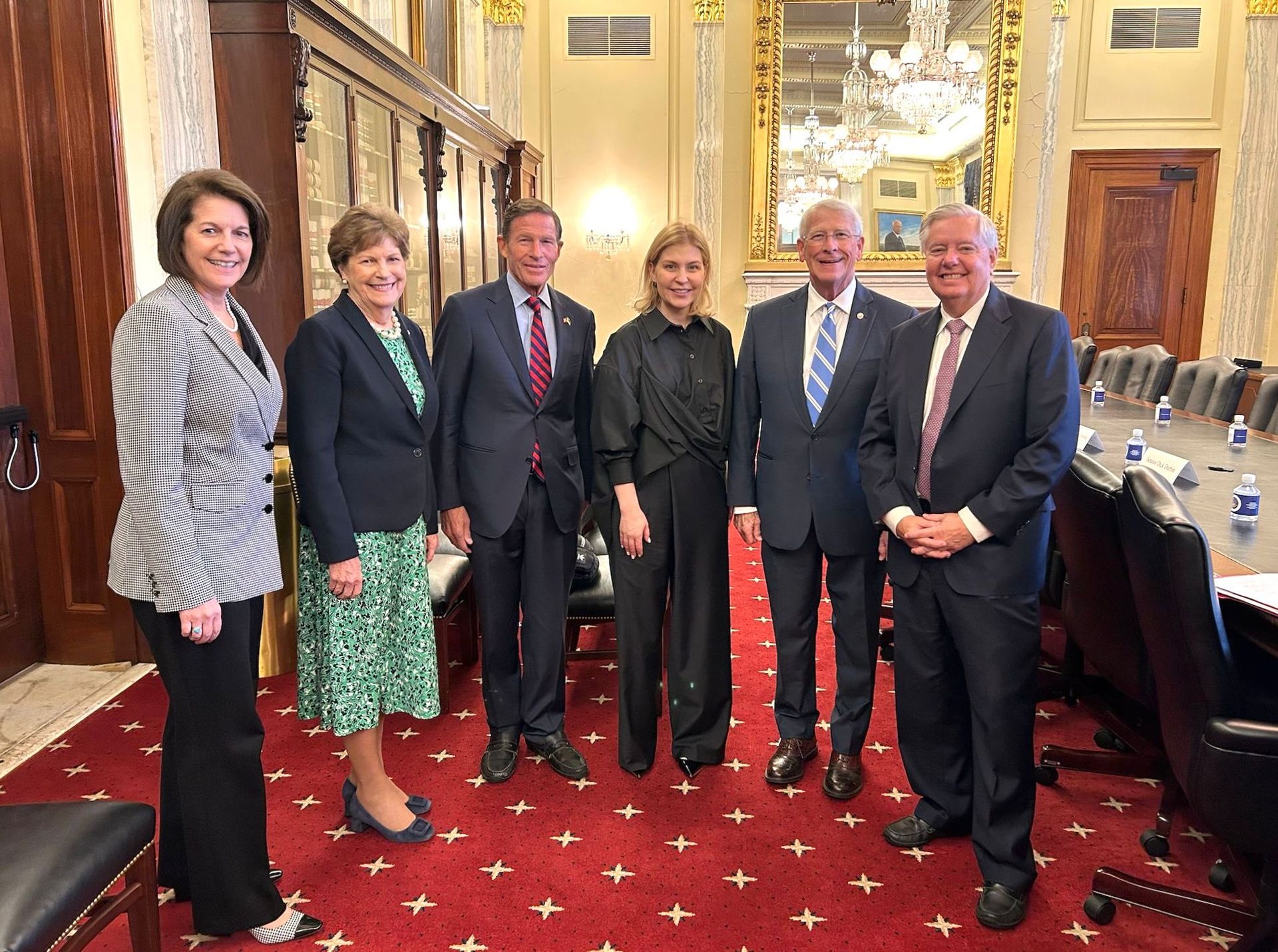 Olha Stefanishyna © and U.S. senators in Washington, D.C., in a photo published on Oct 9, 2025. (X / Olha Stefanishyna)