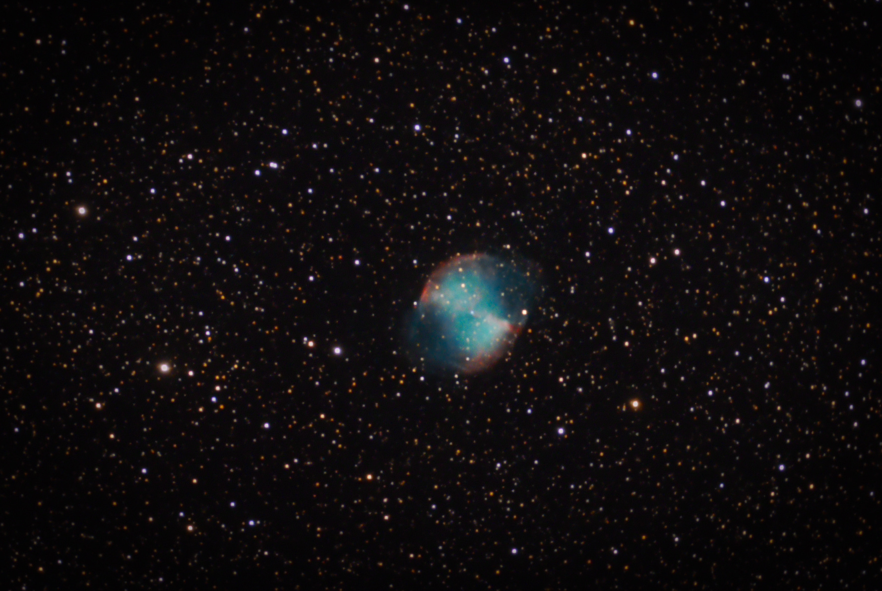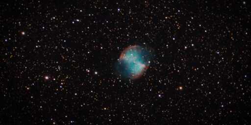 The Dumbbell Nebula, is located about 1,200 light-years from Earth. It was formed by the outter shell of a dying star and is one of the brightest nebulae visible from Earth.
