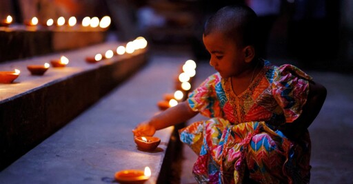 Mohammad Ponir Hossain / ReutersA child touches an oil lamp used to decorate the surroundings of a temple during Diwali celebrations in Dhaka, Bangladesh, on October 20, 2025.