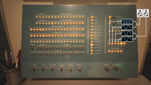 The video demonstration was recorded at the Computer History Museum in Mountain View, California. [Peter Samson] is operating the PDP-1, which is running the Harmony Compiler—which allows the machine to play four individual voices. This is achieved by taking advantage of the PDP-1’s program flags, which are visible as six light bulbs on the control panel. Instructions can be used to turn these bulbs on and off. The Harmony Compiler works by switching the bulbs on and off fast enough to create audible square waves when the light bulb outputs are wired to a simple audio amplifier.