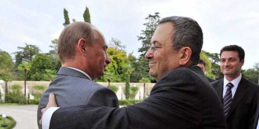 Russian Prime Minister Vladimir Putin shakes hands with Israeli Defense Minister Ehud Barak as they meet September 6, 2010 in Sochi, Russia. Handout photo by Ariel Hermoni/ Israeli Defense Ministry via Getty Images.