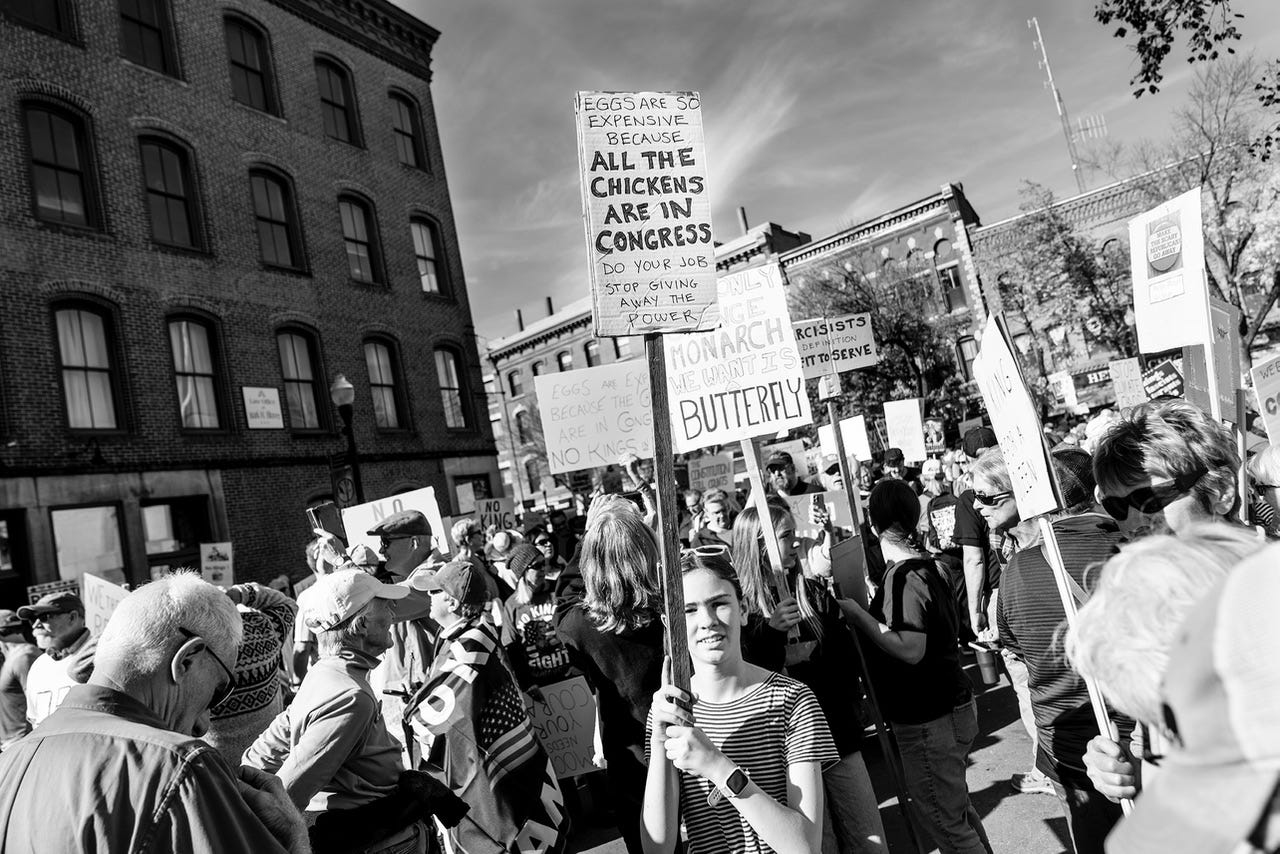 The No Kings Alliance is the new rapid response arm of the No Kings movement. There are three ways to take action: —Donate to your local food bank. Support your local food bank or mutual aid network with a financial gift to help feed families directly impacted by the shutdown. —Collect and distribute to your local community shelter. Donate food, clothing, menstrual products, and any other essential supplies to existing local food banks or shelters. Check with your local organizations first to see what they need most. —Host a give-back drive in your community. Visit No Kings Alliance to learn more and start a food/supply drive. Every few weeks, the No Kings Alliance will announce new opportunities for direct action in support of each other and to push back against President Trump’s authoritarian power grabs… Visit NoKings.org/alliance to learn more.