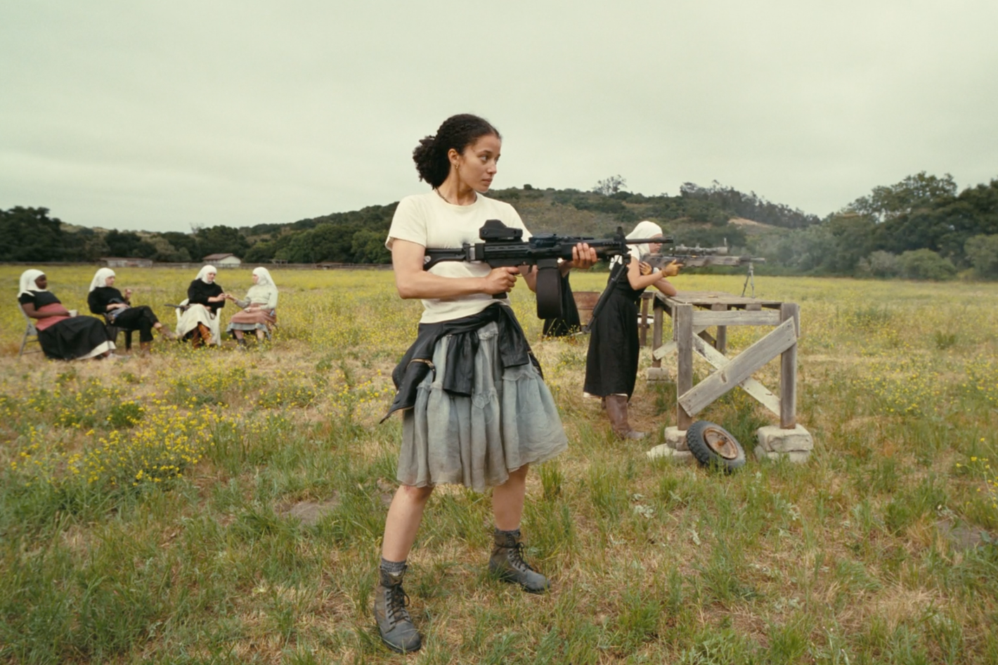 In this light, Paul Thomas Anderson’s new film, One Battle After Another, in which Teyana Taylor, Leonardo DiCaprio, and Regina Hall play members of a fictional leftist terrorist organization, the French 75, is instructive and timely. Too timely, perhaps. Conservative critics complain it has romanticized political violence in the wake of Kirk’s assassination, while leftists, pilloried by pundits and politicians for their irreverent response to Kirk’s death, relish its favorable depiction of militancy. It is Anderson’s curious fortune to have conjured a fantasy of the American left — organized, disciplined, judiciously violent — that exists, today, only in the fevered imaginations of the MAGA faithful and the impotent daydreams of online radicals. Once again, thanks to cinema, Americans are dreaming the same dream.