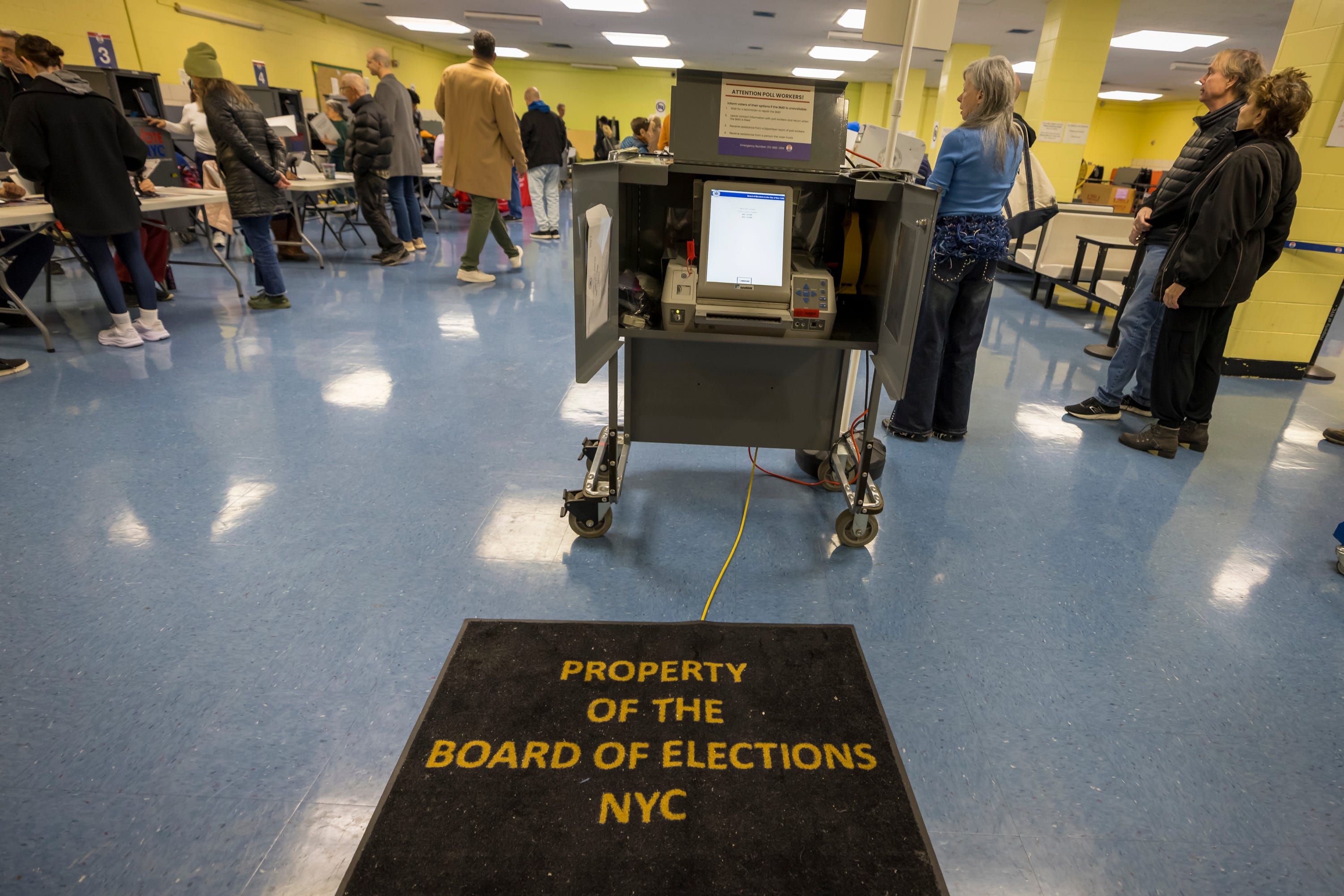 New Yorkers cast their ballots on the first day of in-person early voting for the next New York City mayor in the borough of Manhattan. The main candidates are Zohran Mamdani, Andrew M. Cuomo, and Curtis Sliwa. (Photo by Michael Nigro/Pacific Press/LightRocket via Getty Images)