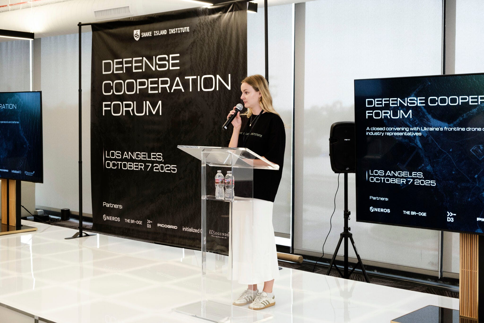 On the West Coast, Sobolevsky and friends also paid a visit to the Naval Postgraduate School in Monterey, California. This appears to have been a more intimate meeting with students. In Los Angeles, the Snake Island Institute hosted a private “Defense Cooperation Forum.” According to the SII, “we brought together U.S. manufacturers, investors, and military representatives with Ukrainian military end users and defense-tech firms for a closed-door, honest conversation about the challenges and opportunities of defense innovation.” There were at least a few additional speakers, but the event partners were more interesting: