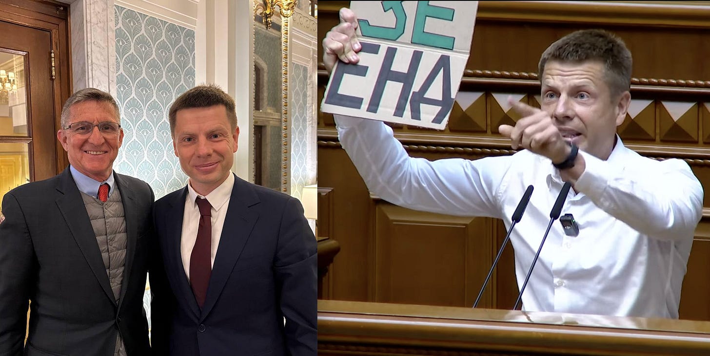Flynn and Goncharenko (March 2025), and Goncharenko calling for “Ze End” of Zelensky (July 2025)