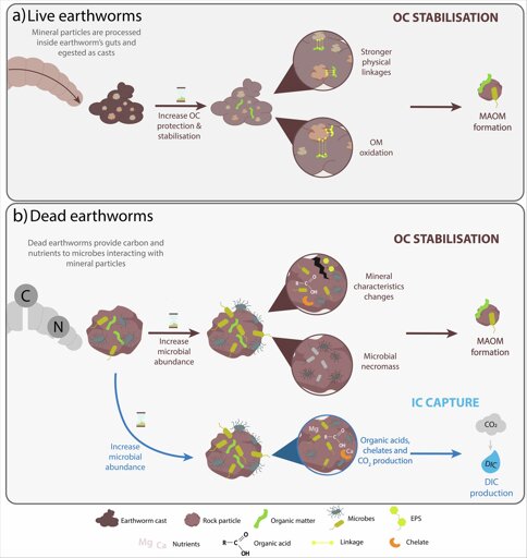 Earthworms don't stop shaping soil processes when they die. A new study shows they can still help store carbon in the soil, even after death. "This is quite surprising," says lead author Tullia Calogiuri. "Most of our knowledge about earthworms comes from their activity while alive, such as burrowing, feeding, and producing feces. Finding that they also play a role after death is exciting."