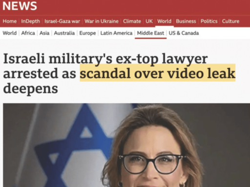 The broadcaster had published an article about the arrest of Major General Yifat Tomer-Yerushalmi, who had admitted authorising the leak of video footage exposing the brutal rape. However, the BBC framed its headline to suggest that the leak, rather than the repeated raping of Palestinian detainees, was the scandal: